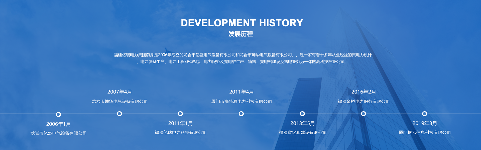 福建亿瑞电力集团,成立于2015年4月,注册资金1.59亿元,主要经营高低压成套设备、箱式变电站、配电箱、计量箱、照明箱、母线槽、电缆架桥、充电桩等产品的生产、销售 以及城市道路照明工程、机电工程、输变电工程的设计、总包施工,电力设备智能运维服务和充电站的建设及售电服务